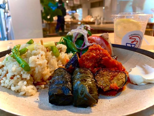ナッツのピラフ(写真左側)に添えられた南会津産の