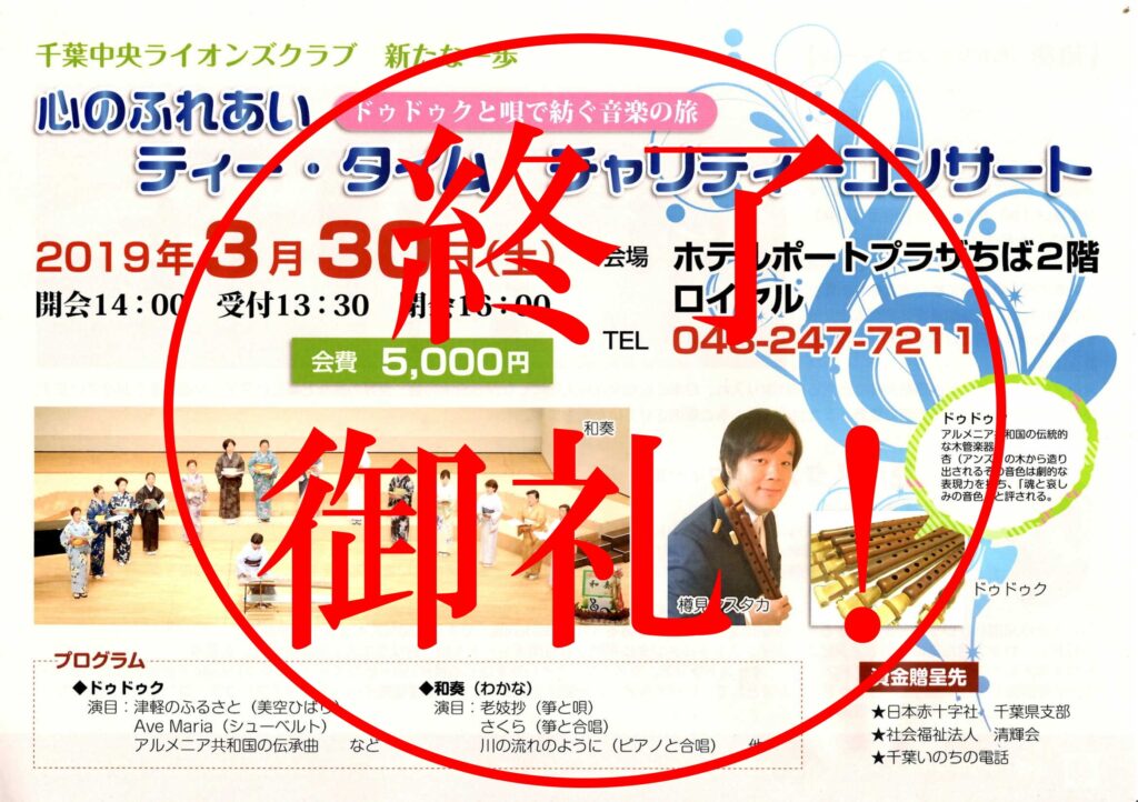 去る3月30日、「心のふれあい チャリティーコンサート ドゥドゥクと唄で紡ぐ音楽の旅」が終了しました。